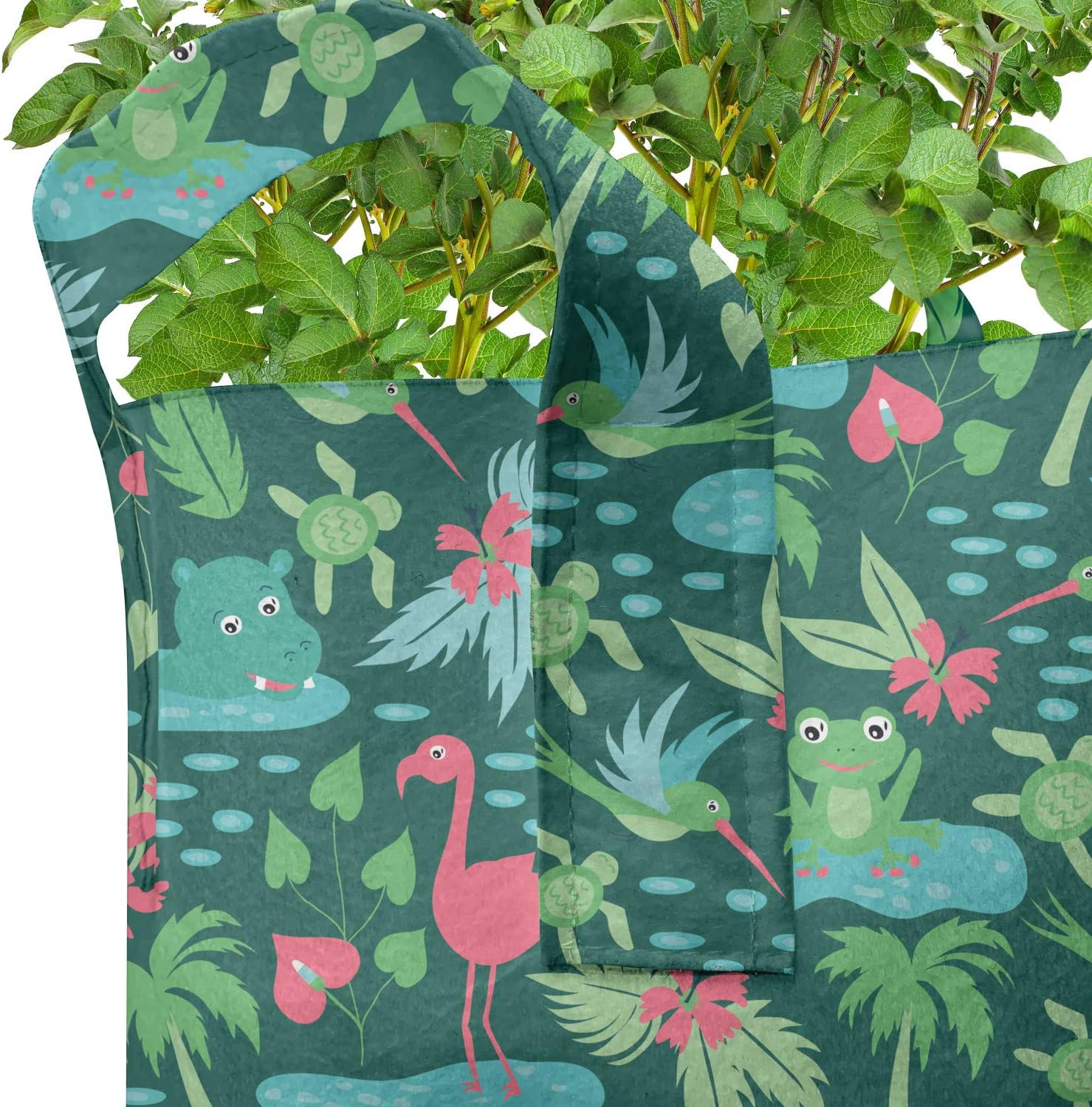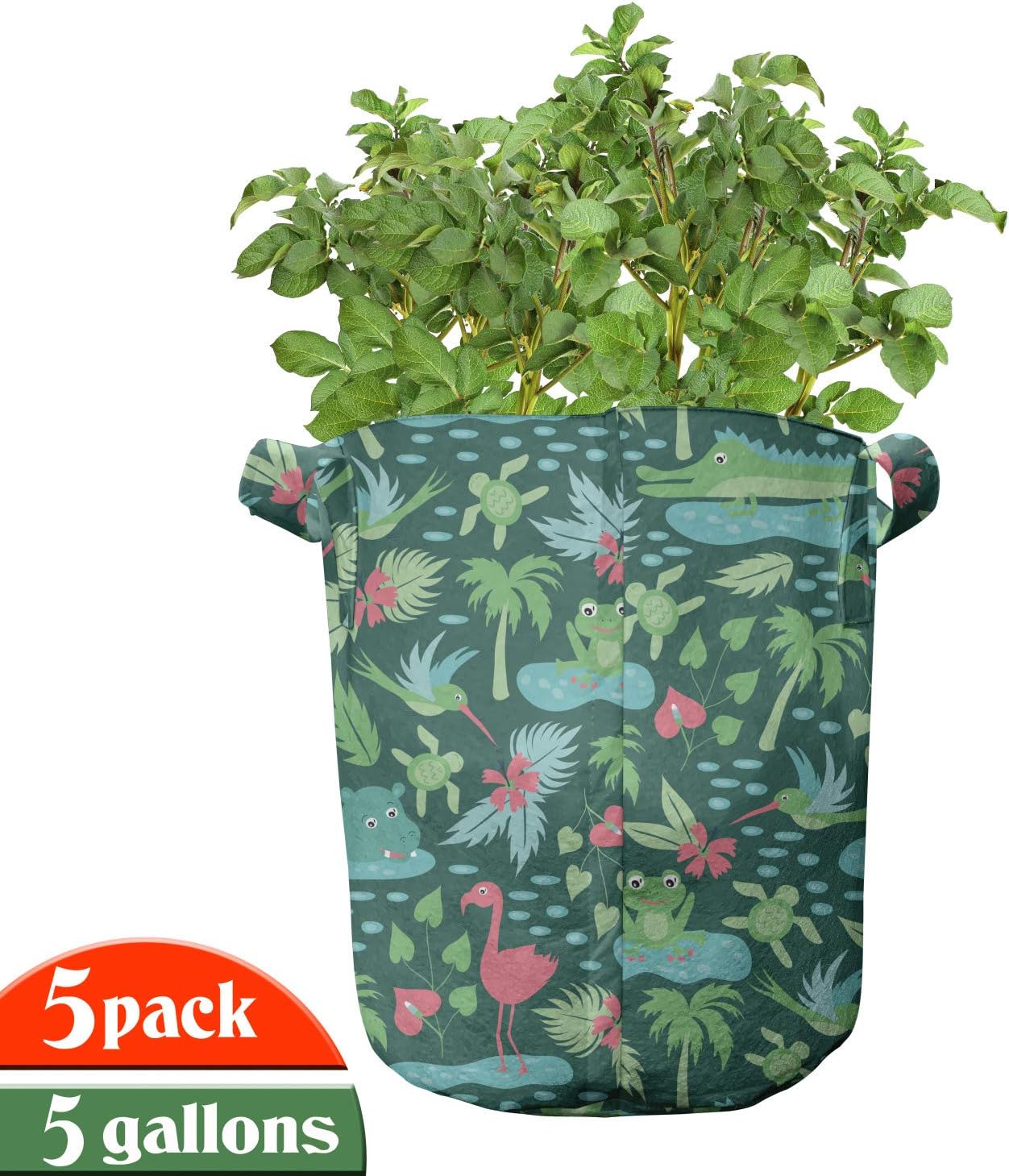 5 PACK - Printed grow pots. Size of the bags: 11.8" W x 11" L. 5 Gallon. Easy to move around. MADE FROM - High quality 100% thickened non-woven polyester fabric. Perfect for container gardening. FEATURES - Heavy-duty handles. Stain & water-resistant. Can be used up to 3 years. No toxic dyes. INDOOR GARDEN - Grow a variety of plants like tomatoes, peppers, various greens, root vegetables. PRINTED - With state of the art digital printing technology. Long-lasting bold colors & clear image. Do you want to learn the decorative way to grow healthy plants? The answer is; these printed fabric pots pack of 5! This portable fabric bag is made from nonwoven polyester to grow any kind of plant. These bags are environment-friendly and allow your roots to breath. With its smart design, there is more room to grow for your flowers, plants, beans, garlics, patatoes, salad leaves, eggplants, peas, onions, beetroots, tomatoes, mint, sage, herbs, strawberries, cress, chilies and peppers. Allows your plant's roots to breathe. Develop strong roots and keep them well with these printed bags. Move your bag full of soil and plants with large sturdy handles; minimalize the risk of transplant shock. Keep your plants warmer in the winter and cooler in the summer. Improve overall root structure and provide better use of water and nutrients. Besides being that much useful, these planting bags are also decorative! Add color and style to anywhere you like with thousands of different patterns. As well as decorating your garden, you can create a stylish accent for indoor use, too. Our portable fabric grow bags are washable, easy to clean for reuse. Save money and save your plants by these fabric pots. The digital images we display have the most accurate color possible, however due to differences in computer monitors, we cannot be responsible for variations in color between the actual product and your screen.